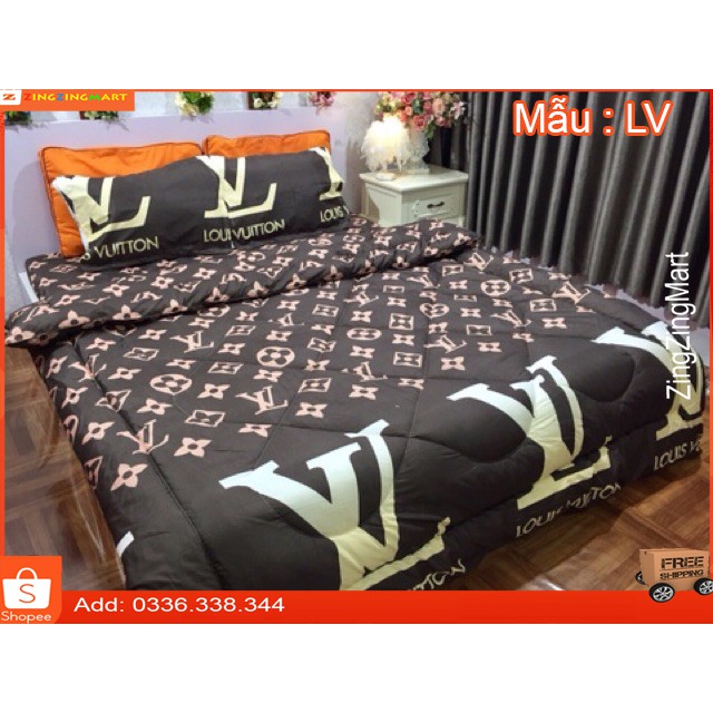 (GIẢM GIÁ) Sét 5 Món Chăn Phao Ga Gối Kèm Vỏ Gối Ôm Mẫu LV - LOUIS VUITTON (Được chọn mẫu)