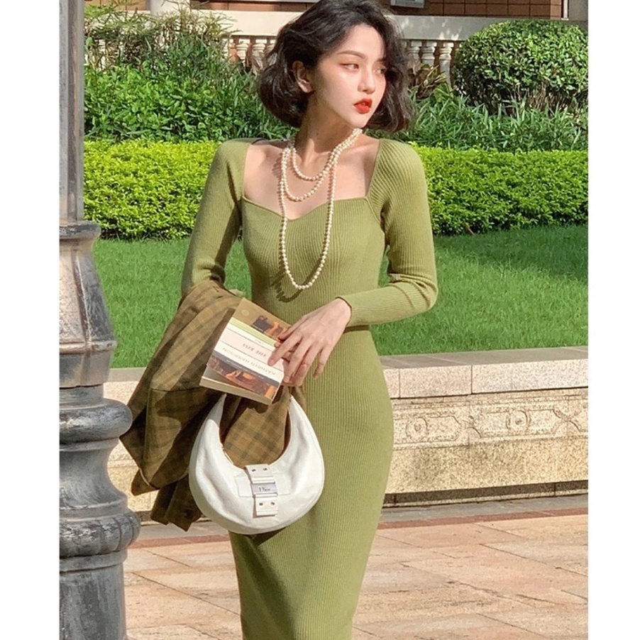 Đầm len dệt kim ôm body thu đông free ship